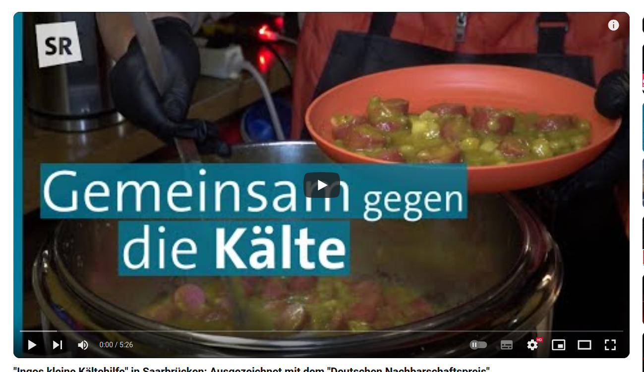 Der Saarländische Rundfunk berichtet über das Engagement von Ingos kleine Kältehilfe – Hand in Hand e.V. in Saarbrücken.